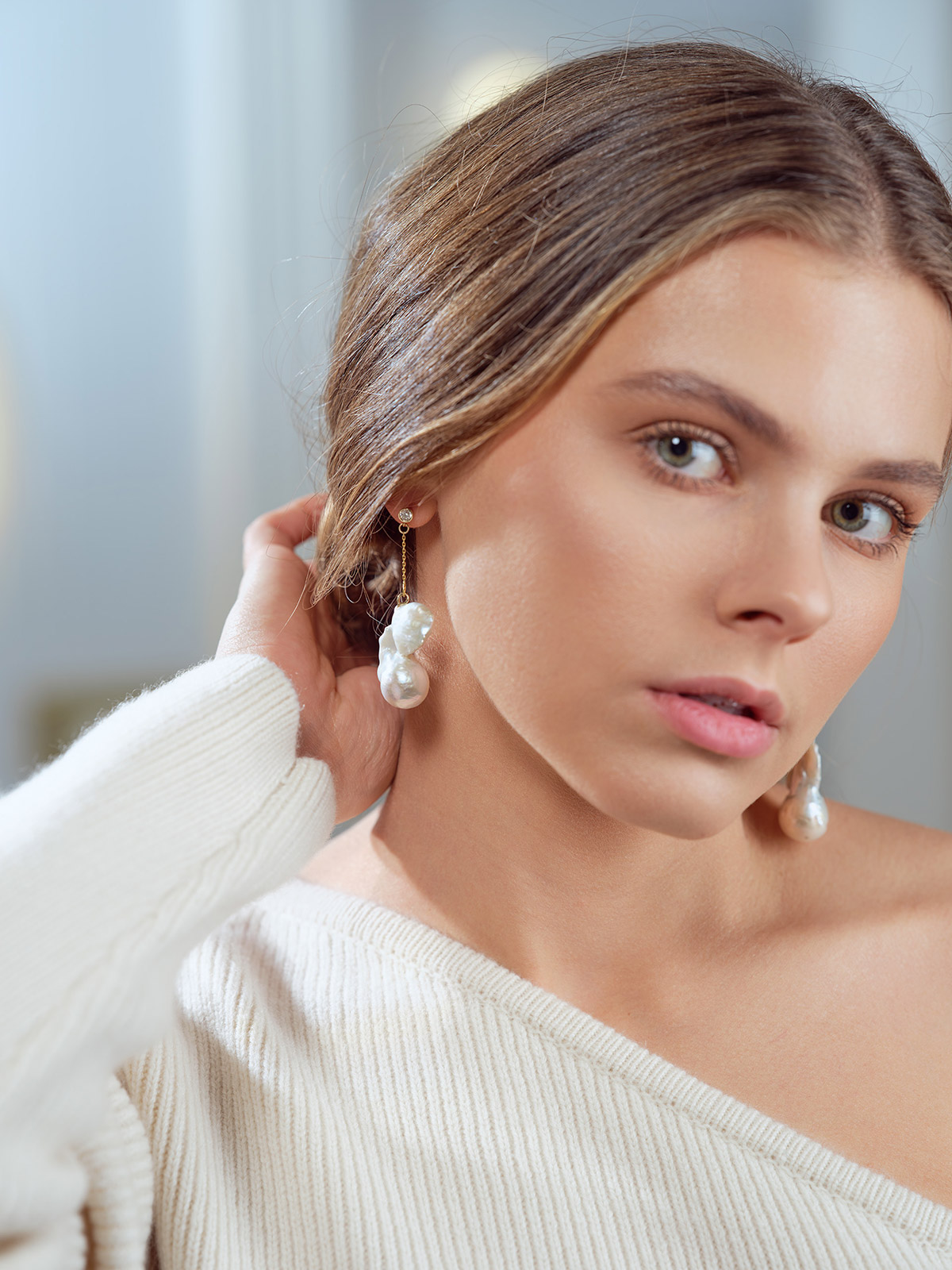 Kolczyki z perłami barokowymi i brylantami