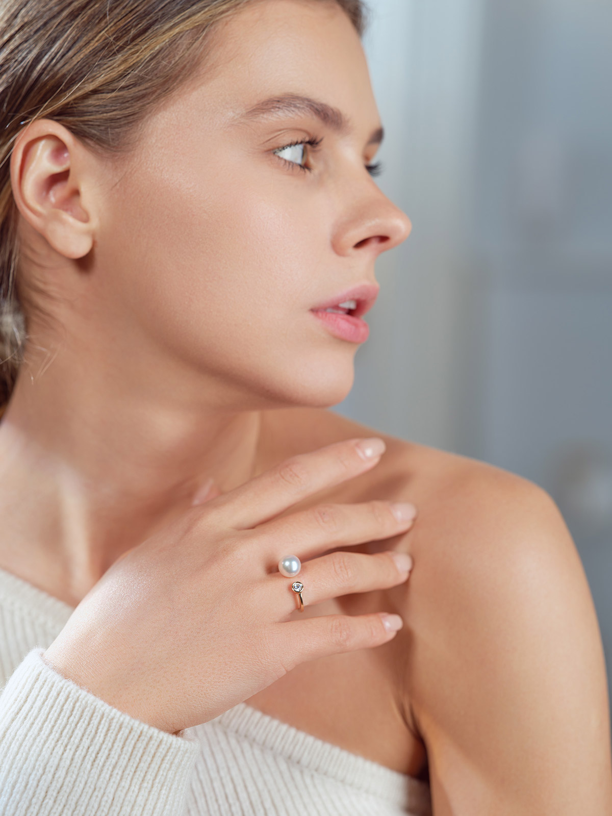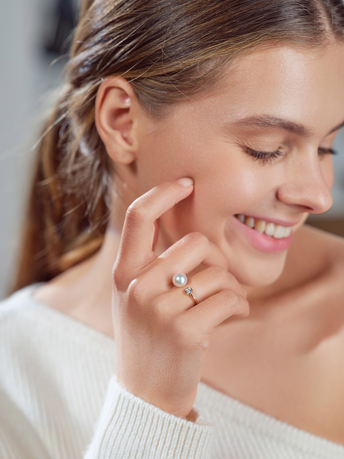 Pierścionek z perłą Akoya i brylantem