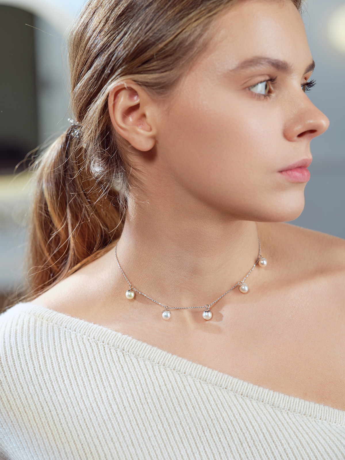 Naszyjnik z pereł w białym złocie